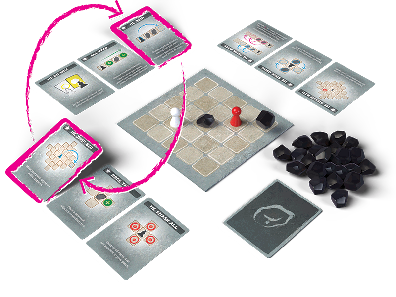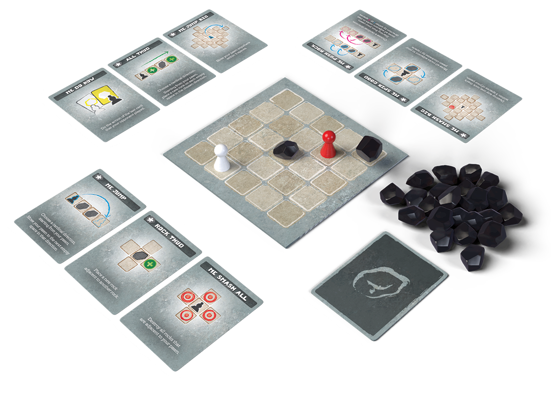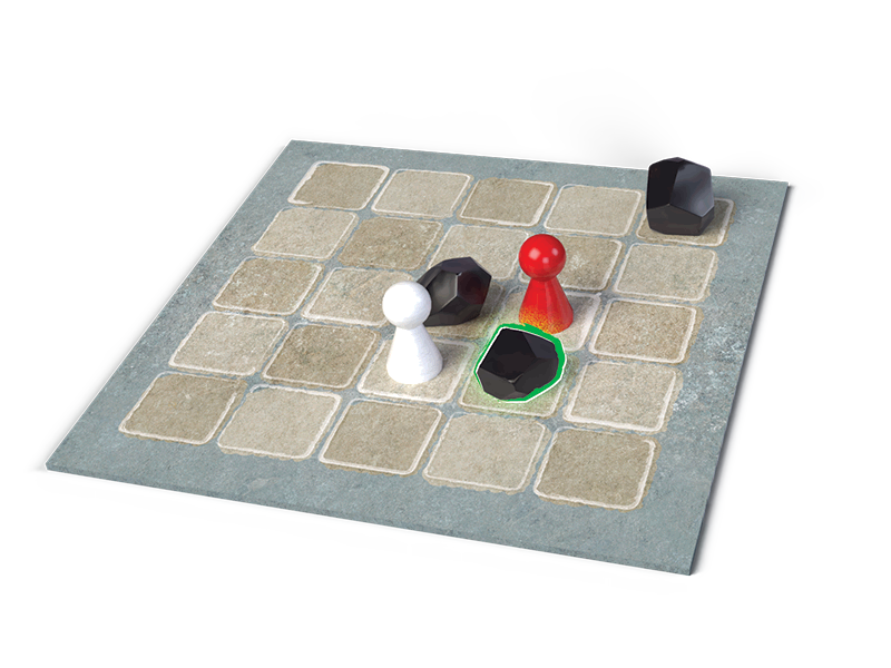 You and your opponent are trapped in a cave that gets smaller every turn. Every turn, you’ll reshape the space, shifting positions and closing off paths. The rules are simple, but the tension builds fast.